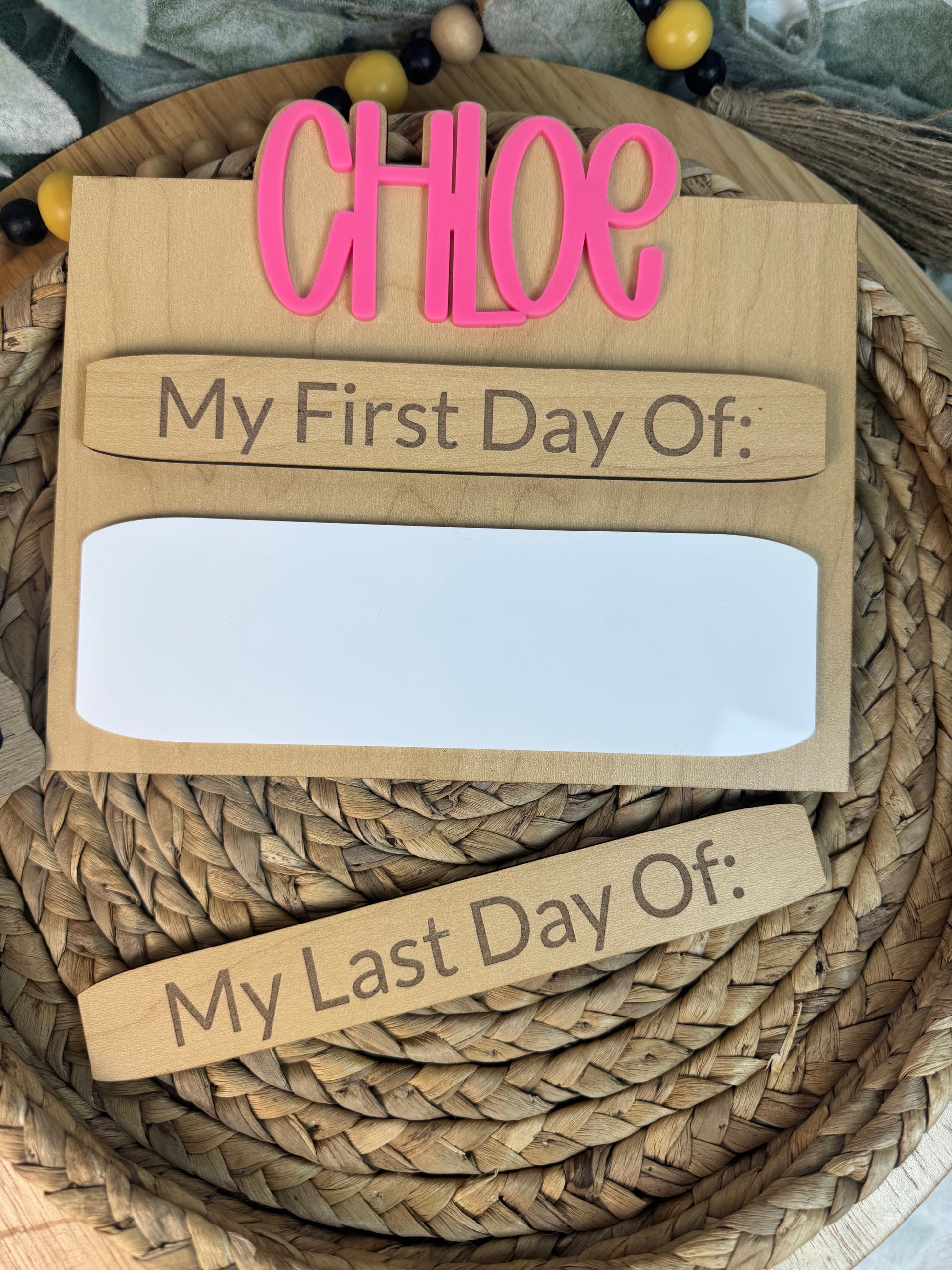 Custom First Day of School Sign with Name – Reusable Photo Prop with Magnetic Last Day Piece & Dry Erase Grade Area