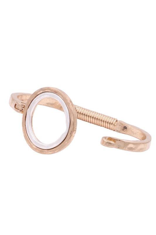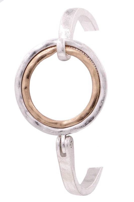 Elevate your wrist stack with this modern hammered metal ring layered bracelet. Featuring textured metal ring layered together for dimension and shine, with a hook closure, this piece blends contemporary style with subtle edge.