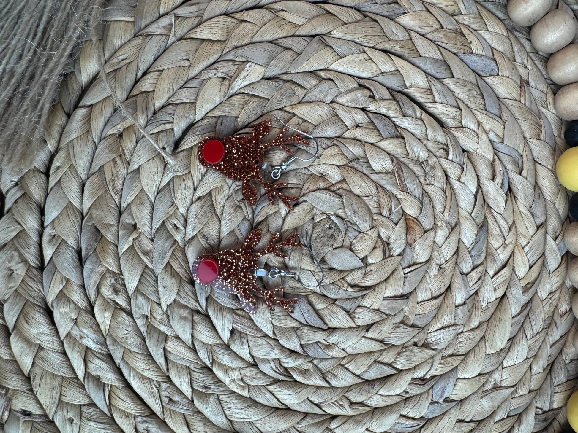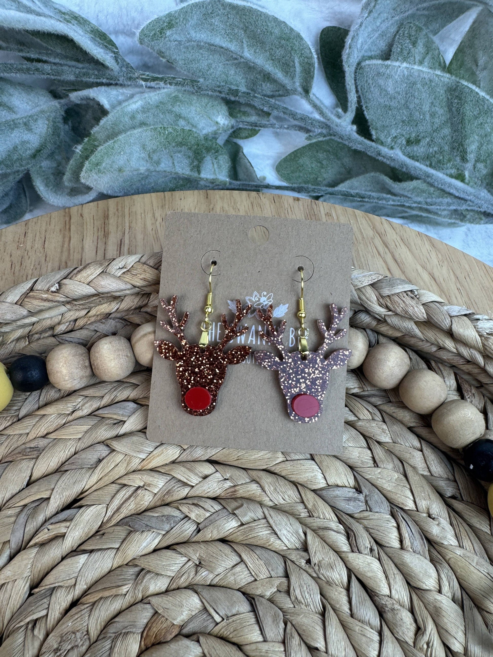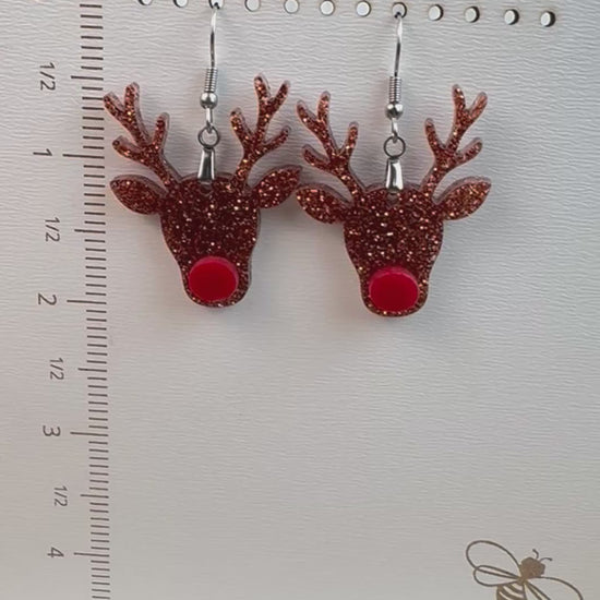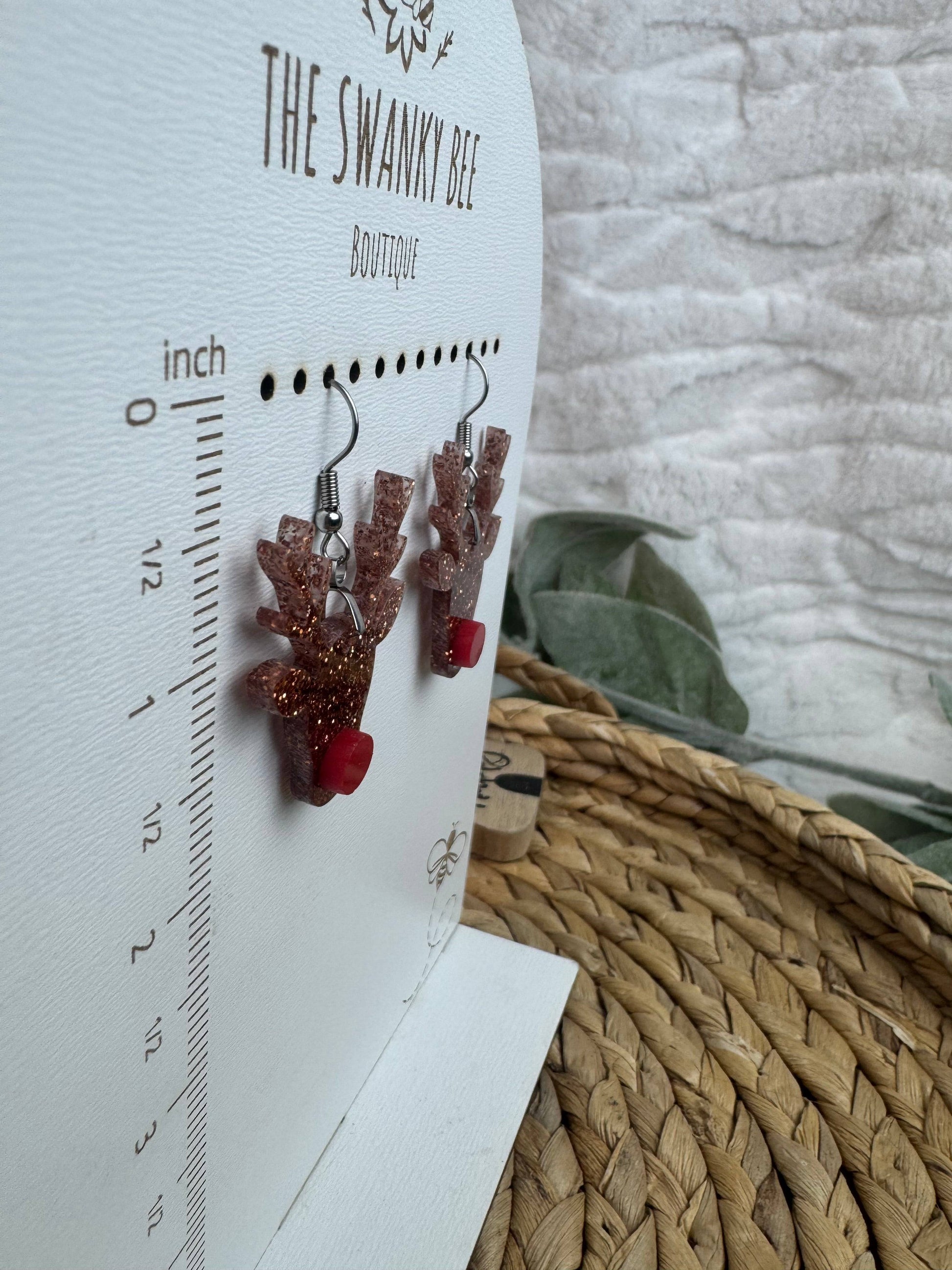 Red Nose Reindeer Glitter Earrings – Festive Christmas Dangle Earrings