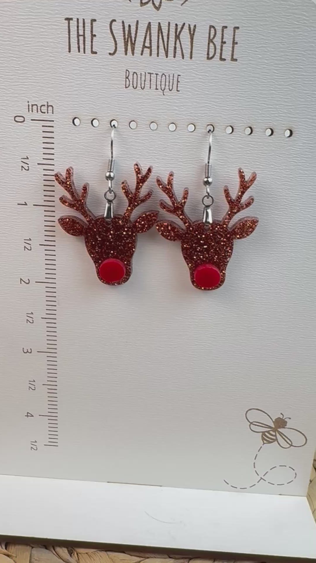 Add a little sparkle to your holiday style with these adorable Red Nose Reindeer Earrings! These lightweight glitter dangles feature cute antlers, a bold red nose, and just the right amount of Christmas cheer. Perfect for holiday parties, teacher gifts, stocking stuffers, or anyone who loves festive accessories.